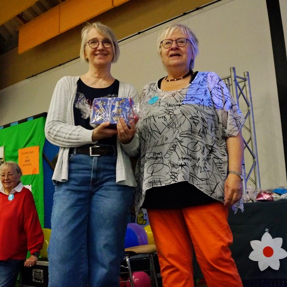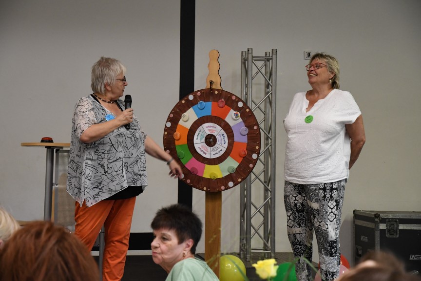Das Glücksrad hatte mehrere Aufgaben zu bewältigen. Es mussten nicht nur die Gruppen, die gegeneinander antraten, ermittelt werden, sondern auch die Kategorie der Quizfragen aus den verschiedenen Bereichen: Ruhrgebiet, Getränke, Musik, Märchen und Sprichwörter. Auch hier ein Kompliment an das Orga-Komitee für die liebevoll verpackten Haupt- und Trostpreise.