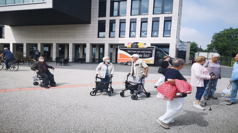 Natürlich mit Abstand. Einige setzten sich in die Sonne, die Anderen machten sich auf,