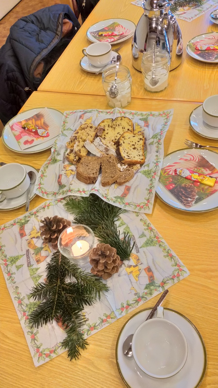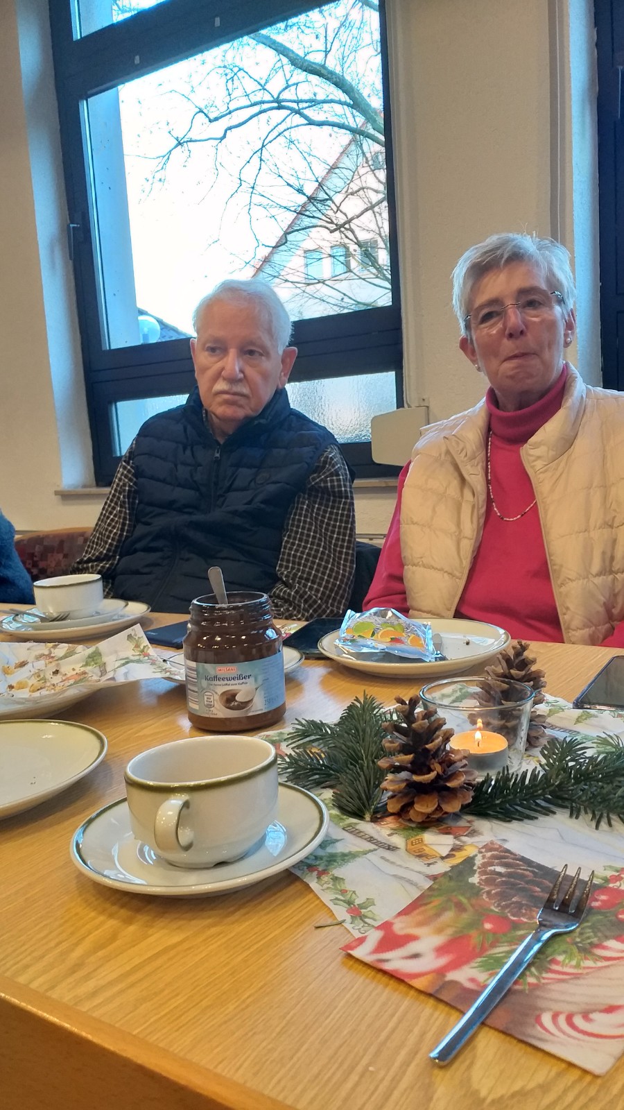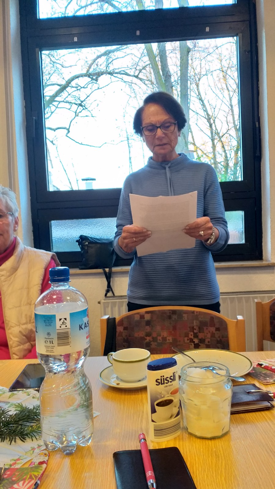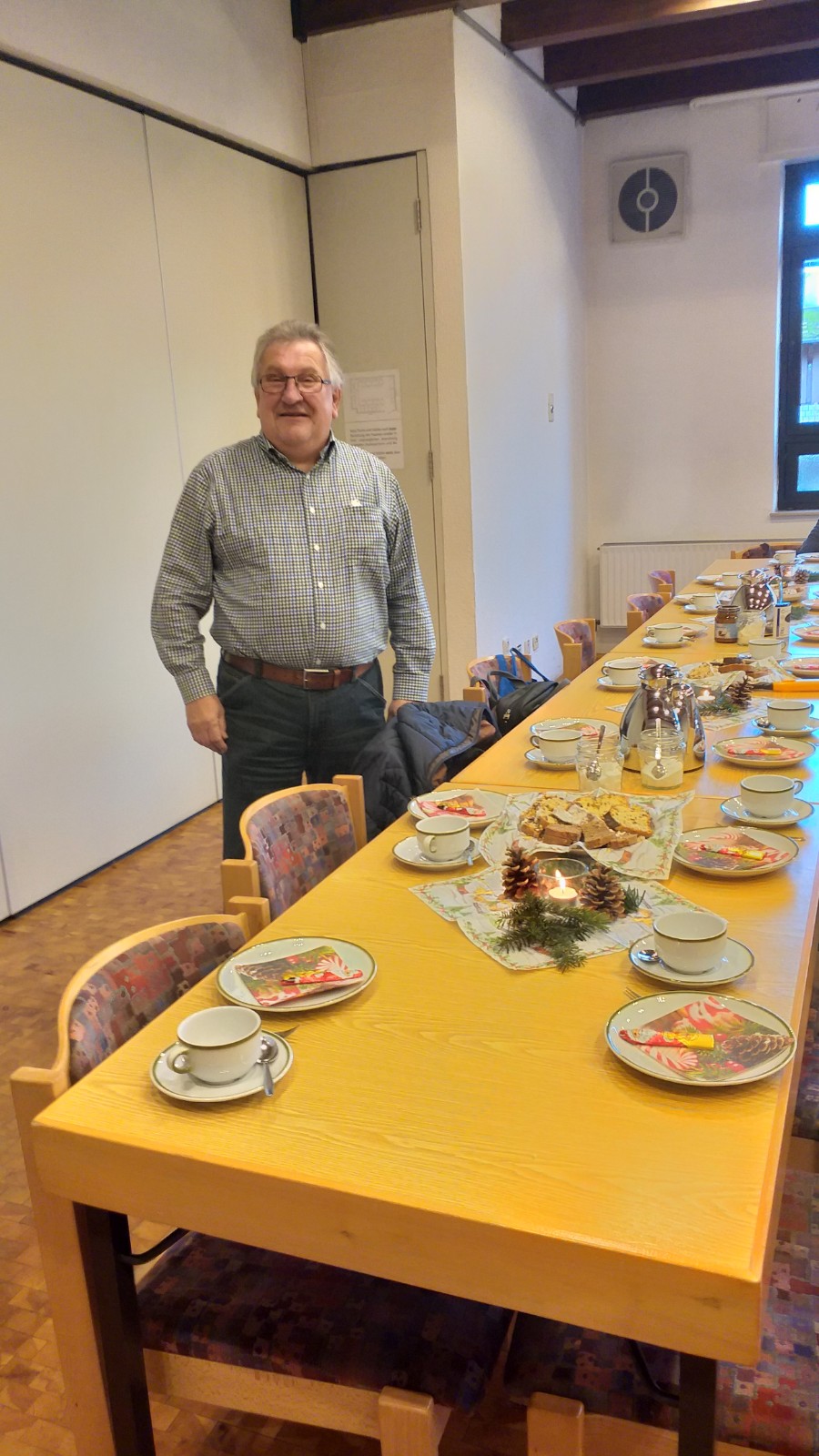 Letztes Jahr musste unsere Weihnachtsfeier leider wegen CORONA ausfallen. In diesem Jahr war es anders, alle waren geimpft und geboostert. Jetzt konnten wir starten: Die Tische wurden mit Kerzen, Servietten und Zapfen geschmückt. Wir haben Kaffee getrunken, Kuchen gegessen, Gedichte und Weihnachtsgeschichten vorgelesen und natürlich "gequatscht", das war besonders wichtig. Es war ein schöner Nachmittag. Hoffen wir, dass wir uns im neuen Jahr zufrieden und gesund wiedersehen.